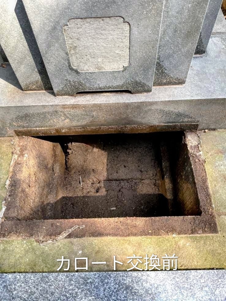 そのため、雨水の浸水や泥はねなどで汚れていましたが、棚石の上に納めることで綺麗な状態をたもてるようになりました。