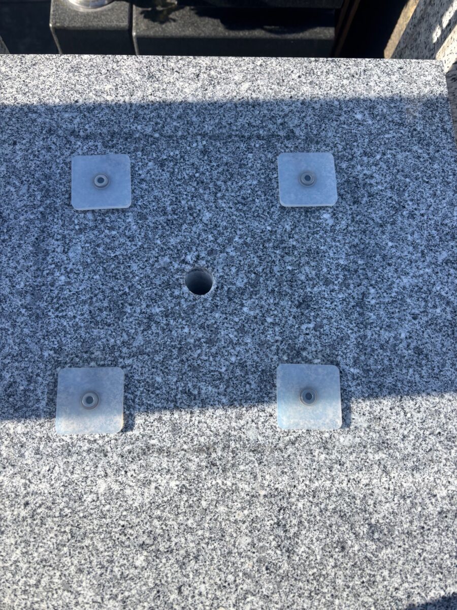 ダブルクッションプレートで荷重の分散と振動を吸収し適度な荷重で変化して墓跡を安定して受け止めて振動を分散して吸収することで墓石を守ります。