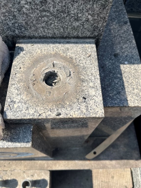 新しい花立の「座」の部分を取り付けるため、穴をあけます。