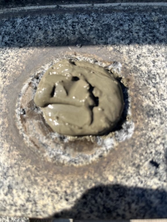 あけた穴にセメントを溢れるくらい入れます。