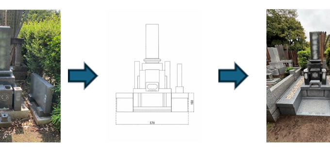 建立予定地の地質調査を行い、弊社のこだわりの一つである地盤改良工事と基礎工事を行い、構造計算をして設計し、地震や衝撃に強く、お参りしやすく、メンテナンス性の良い樹木葬墓及びマンションタイプのお墓を工事致しました。
