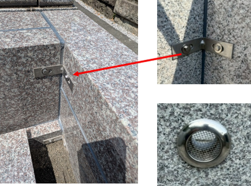 外柵(土台部分)には耐震施工、換気・排水機能を標準で設置し、カロート内の水上がりや結露への対策もしっかりとしております。