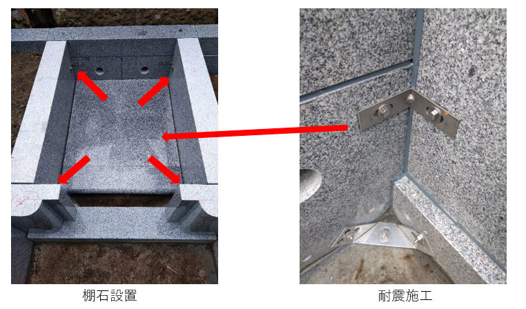 石塔に関しては、特許取得の石塔免震施工を付帯施工として行っております。