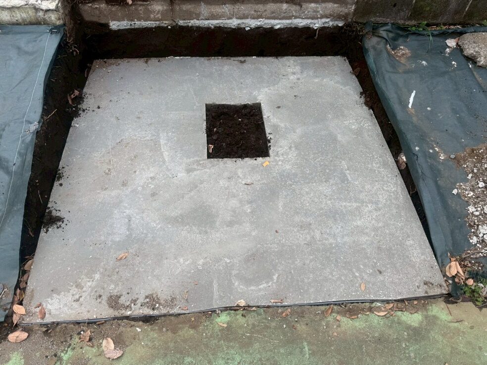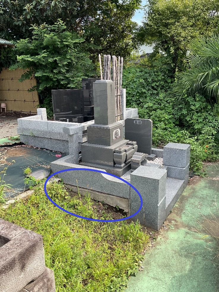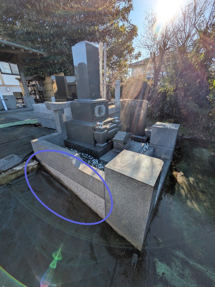 基礎工事等の本来やるべき工程も省かれて施工されていたため、外柵の傾きやズレ、それを原因とした石の割れや倒壊のリスクを抱えておりました。